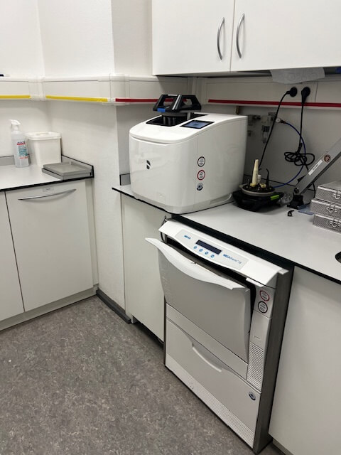 - Modernes Röntgengerät (digital), Intraoralkamera, hochwertige Behandlungseinheiten